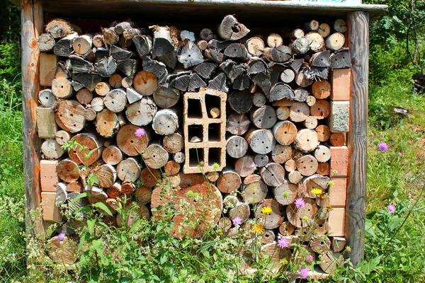 Hier nisten über Jahre hinweg Arten wie die Blattschneidebiene, die Pelzbiene oder die beeindruckende Holzbiene sowie Ameisen und Schmetterlinge.